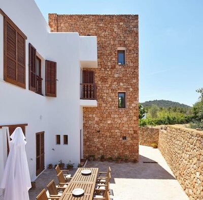 In a breathtaking Ibizan mansion with panoramic views, a stunning infinity pool, yoga and wellness spaces, and expansive living grounds designed for pure luxury and relaxation.